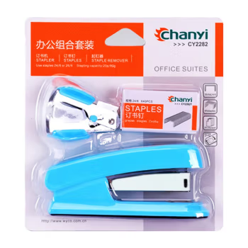 创易(chanyi)订书机起钉器24/6订书针常用中小型装订机办公财务装订用品组合套装 {蓝色/绿色}颜色随机,三合一组合套装
